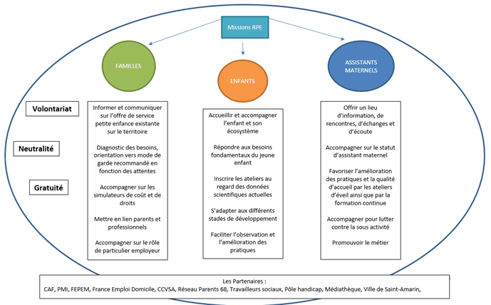 Ces missions sont d’accueillir, informer, orienter, accompagner et animer des ateliers d’éveil à destination des différents publics ci-dessous.